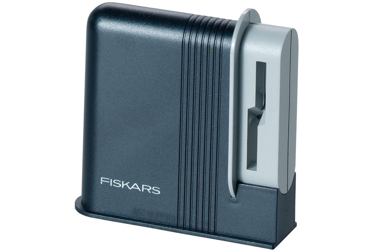 Nie wymagająca energii elektrycznej ostrzałka do nożyczek prawo- i leworęcznych marki Fiskars. Okresowe ostrzenie nożyczek przedłuża ich żywotność.