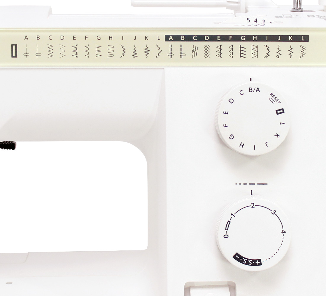 Użytkownik ma do dyspozycji 23 najbardziej potrzebne i najczęściej używane programy ściegowe, wśród nich ściegi proste, zygzak, ścieg kryty, owerlokowy, ściegi dekoracyjne. Długość ściegu można regulować w zakresie do 4 mm, a szerokość do 5 mm. Obszywanie dziurki jest automatyczne – wystarczy ustawić jej szerokość i pozwolić maszynie wykonać resztę zadania.
