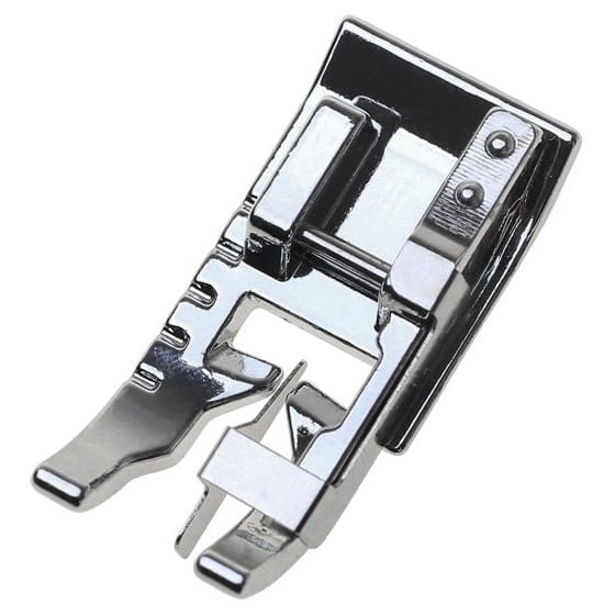 Dzięki temu stopka prowadzona jest tuż przy krawędzi tkaniny. Stopka jest prosta w montażu i pasuje do większości domowych maszyn do szycia.